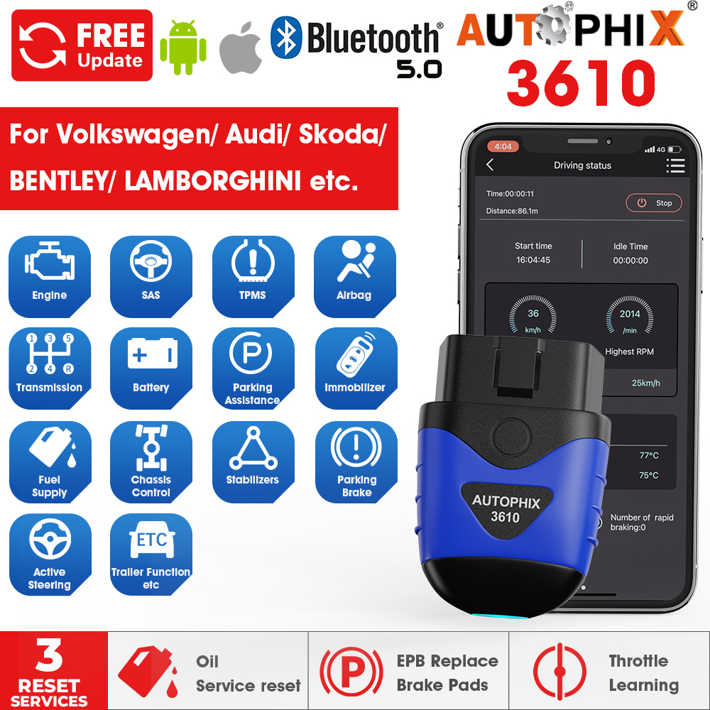 Autophix 3610 Wireless Automotive Diagnostic Scan Tool For Vw Audi Skoda Seat Full System Obd Code Reader Bluetooth Obd2 Scanner Epb Relearn Oil Reset Service Compatible With Ios Android Phone Pad Walmart Com